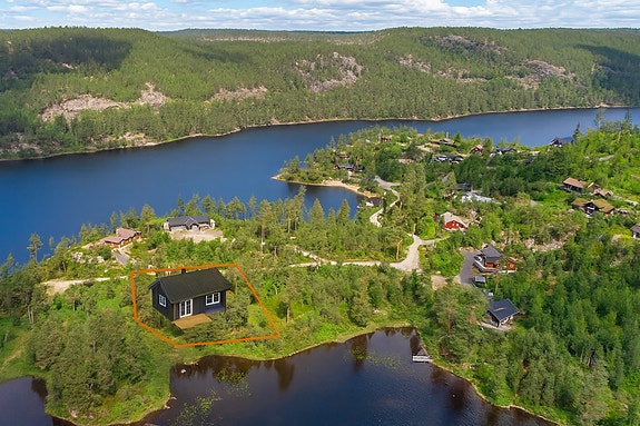 Tenk deg å våkne opp til lyden av fuglekvitter og sol som glitrer i vannet utenfor stuevinduet. Denne tomta gir deg muligheten til å bygge drømmehytta – akkurat slik du vil ha den. Stor tomt helt nede ved vannet – med prosjektert nøkkelferdig hytte fra Familiehytta (modell Mjuken 65). Merk: Hytta er ikke oppført – dette er et tomtesalg med tilhørende prosjekt.