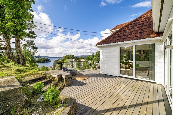 Eiendommen ligger fredelig og vakkert til, med gangavstand til både barnehage, barneskole og det idylliske badeområdet Ervikane. Turstiene venter rett utenfor døren, og Hjortåsen byr på spektakulær utsikt over fjord og fjell.