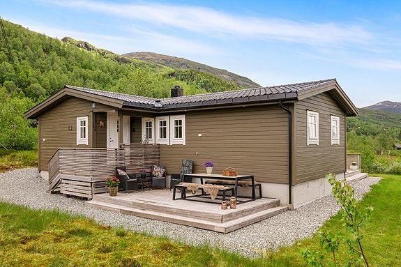 Flott fritidsbolig vesentlig ombygget i 2014-2015! 34m² solrikt terrasseareal. 2 biloppstillingsplasser.
