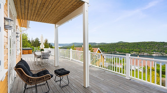 Attraktiv, usjenert fritidsbolig på toppen av Panoramafeltet! Sjøutsikt, båtplass og golfbil.