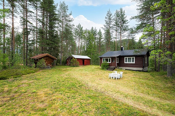 Koselig hyttetun med fritidsbolig, stabbur og uthus langs med Tinnåa i Gransherad i Notodden kommune. Eiendommen har en romslig naturtomt på ca. 1 539,5 kvm hvor det er god boltreplass og fint utsyn til Tinnåa.