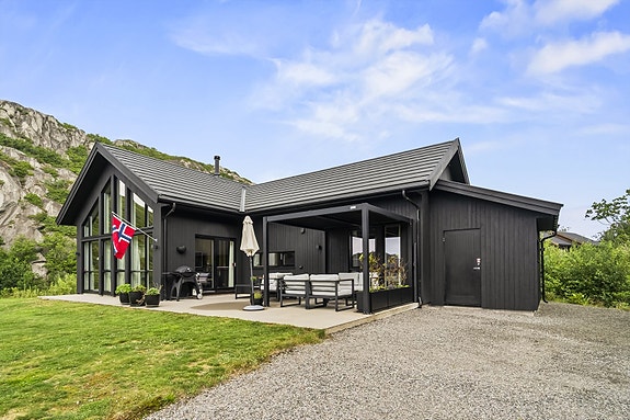 Moderne og delikat hytte med gode solforhold, perfekt for deg som ønsker ro og nærhet til naturen. Hytta ligger kun en kort spasertur fra sjøen og har tilgang til egen båtplass, noe som gir fantastiske muligheter for båtliv og fiske. Med en lys og luftig planløsning byr hytta på høy komfort og er godt tilrettelagt for både avslapning og sosiale sammenkomster. Kun 15 minutters kjøring fra Lyngdal sentrum gir dette idylliske stedet en unik kombinasjon av privatliv og nærhet til alle fasiliteter. Dette er stedet for deg som verdsetter kvalitet og naturskjønne omgivelser! Hytten selges fullt møblert og klar til bruk.