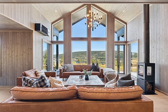 - Stue med god takhøyde og store vindusflater, i åpen løsning med kjøkkenet.