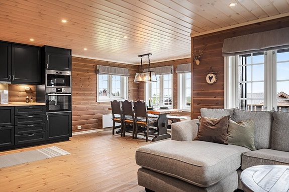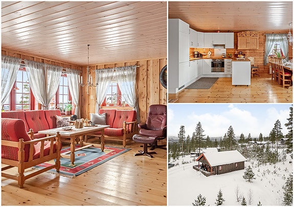 Fantastisk familiehytte i Åkerveien 8 som ligger fint og åpent til i hyttefeltet. Tomten grenser til friareal på to sider som gjør eiendommen skjermet og med fine uteareal for små og store