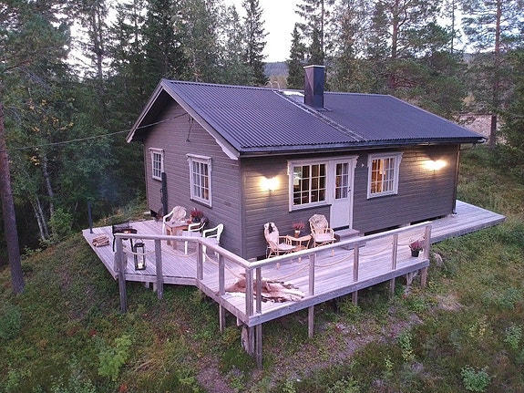 Det er stor terrasse rundt hytta som innbyder til mye utekos.