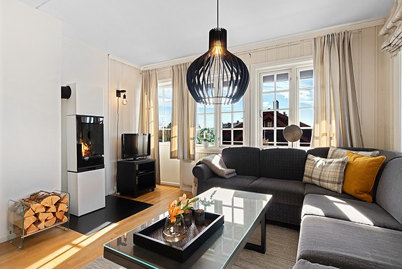 Stuen byr på gode lysforhold da det er en endeleilighet, og man får god utsikt i flere retninger.