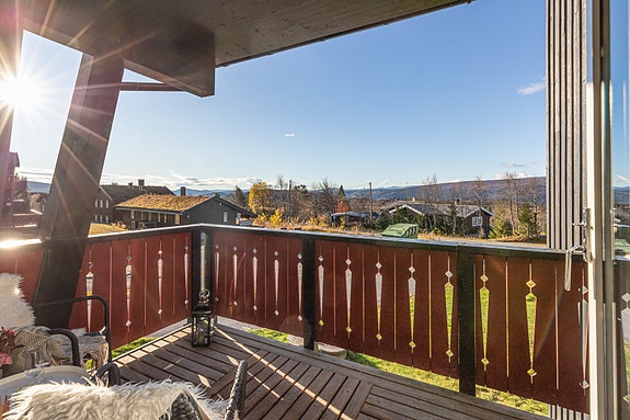 Stølstunet: Koselig leilighet i 2. etasje med sydvendt balkong og fin utsikt - 1 soverom og alkove - Garasjeplass