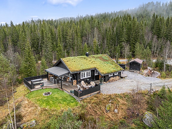Hytta er opprinnelig ferdig oppført i 2013, men er løpende ferdigstilt innvendig med parkettgulv, kjøkken, planlegg, toalett, mv. Det er ikke innlagt vann, men det er 230V strøm i hytta fra stort solcelleanlegg og ny kraftig 5KW batteribank. Der er gassskap ute for to 11kg flasker, gass lagt frem til koketopp/ovn, køleskap er på 230V. Det vei frem til hyttedøra.