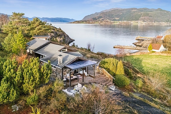 DNB Eiendom V/Øyvind Ådneram har gleden av å presentere Nesa 5 - En flott hytte med privat brygge og strandlinje på naturskjønne Foldøy i Ryfylke!
