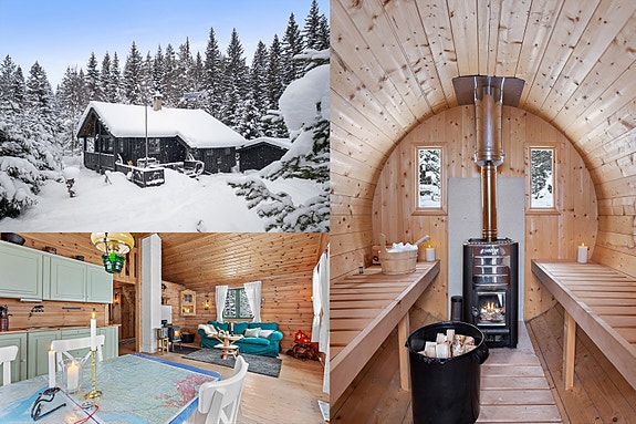 Hytte fra 2002 m/ 3 soverom og hems | Borebrønn med håndpumpe | Vedfyrt badstue og peisovn fra 2024 | 9 sengeplasser