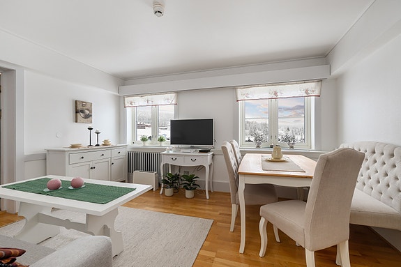 Dette er en lettstelt og arealeffektiv 2-roms fritidsleilighet med sørvendt beliggenhet og flott utsikt over fjellandskapet. Her kan du starte dagen rett i skiløypene og avslutte den med total avkobling. Leiligheten ligger i et sameie med unike fellesfasiliteter, blant annet svømmehall, badstuer, peisestue samt biljard- og bordtennisrom. Etter en aktiv dag utendørs kan du nyte roen inne eller ta en dukkert i bassenget. Sameiet har også garasje med elbillader, og kort vei til både langrennsløyper og alpinsenteret på Sjusjøen gjør dette til et perfekt sted for deg som ønsker et enkelt fritidsliv med høy komfort!