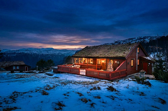 Innholdsrik hytte m/nydelig utsikt, jacuzzi og gode solforhold. Naturskjønne omgivelser. Gode ski- og turmuligheter.