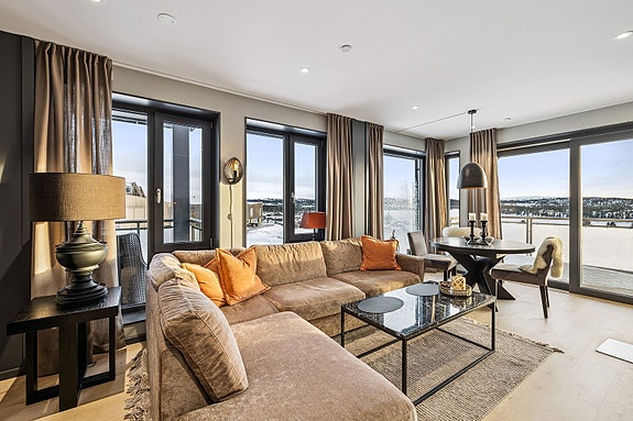 Stor, spesialdesignet hjørneleilighet med panoramautsikt sentrumsnært på Sjusjøen