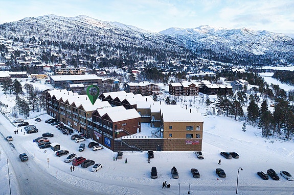 Her vil du kunne gå rett ut fra smøreboden i parkeringskjelleren og ut i den flotte lysløypa. Rema 1000 og Vinmonopolet finner du i første etasje ellers er det gangavstand til alle Hovdens fasiliteter som butikker, Hovden Fjellbad, serveringsteder og alpinanlegg.