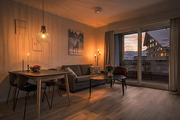 Lys og trivelig 3-roms fritidsleilighet i sentrumsområdet | Balkong | Heis | Vannbåren varme | Ski in/​ski out