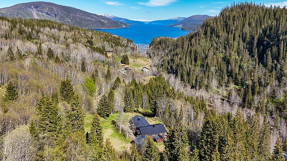 Eiendommen ligger rimelig alene på en høyde med fin utsikt over