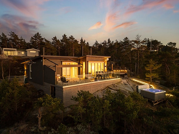Velkommen til en gjennomført og moderne fritidsbolig med en sjelden, vannær beliggenhet. Her får du høy komfort, stilrene kvaliteter og rolige, bilfrie omgivelser - Perfekt for både avslapning og aktive dager