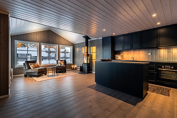 Velkommen til denne lekre, moderne fritidsboligen som er under oppføring. Beliggenheten er nydelig, midt i vakker norsk natur med flott turterreng. Start skituren rett utenfor døren, f.eks. med en skitur i den 4,5 km lange lysløypa. Det er også kort avstand til flere flotte alpinanlegg. Hytta har bilvei helt frem til hytteveggen og det er god plass til parkering i egen gårdsplass. Utenfor stue og kjøkken blir det en herlig terrasse på 14,7 kvm.