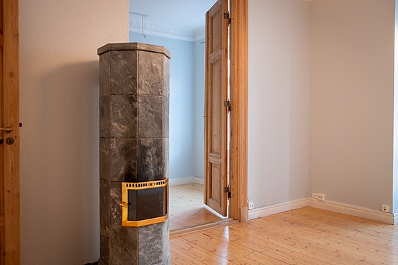 Leiligheten er lys og gjennomgående med god takhøyde. Det er vel bevarte rosetter og stukkaturer på kjøkken, soverom og stue. Originale slipte tregulv er gjennomgående i hele leiligheten foruten bad som er flislagt på gulv og vegg. Badet er totalrenovert i 2017. Alle vegger og himling malt i lyse farger. Kjøkkenet er renovert i 2025 med nymalte overflater, ny vask og armatur.