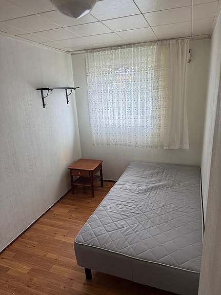 Det er gardiner, kleskap, teppe og seng inkludert i leien. Bade er nyoppusset.