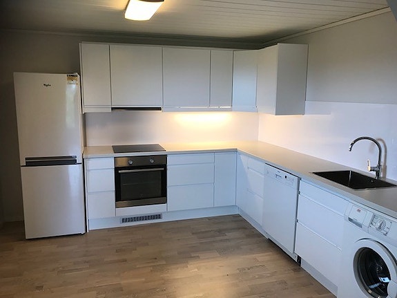 Det følger med hvitevarer: koketopp, stekeovn, oppvaskmaskin, vaskemaskin, kjøleskap.