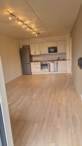 Leiligheten leies blant annet ut med seng og hvitevarer som; micro, komfyr, kombinert kjøl/frys og kombinert vask/tørk.