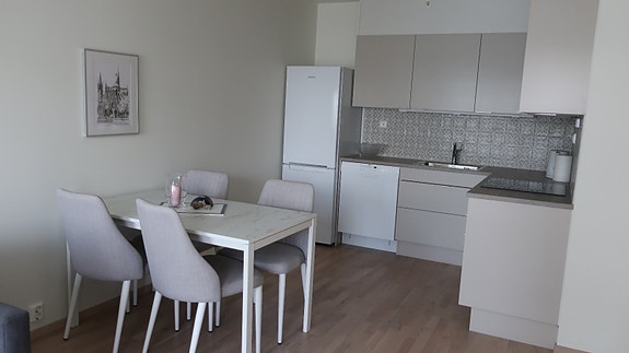 Alle hvitevarer og nyttig kjøkkenutstyr, samt TV, mikrobølgeovn med mer er inkludert. Hvitevarer medfølger så lenge de virker, reparasjon/bytte inngår ikke i leieavtalen.