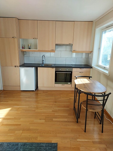 Leiligheten har ett soverom med god garderobe, bod/kontor, stue og kjøkken i ett og bad. Hvitevarer som er i leiligheten er vaskemaskin, komfyr, kjøleskap , fryseboks og mikro. Parkeringsmuligheter 100m fra leiligheten.