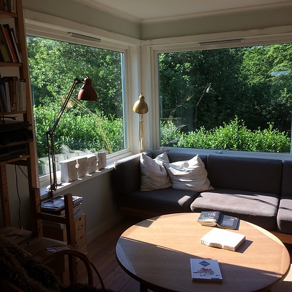 Sofakrok med utsikt til Vålandskogen