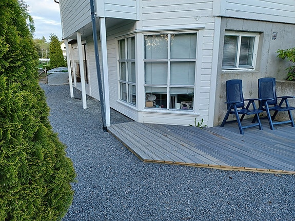 Lys og trivelig leilighet 60 kvm, bygget som leilighet fra huset var nytt. Leiligheten er fysisk av skilt fra hoved leilighet og framstår som en egen boenhet. Egen inngang og egen innkjørsel med parkering. Leiligheten har egen terrasse platting. Soverom, gang, bod, bad og stue med kjøkken. Store vinduer til gulv i stue. Her får du ingen følelse av å bo i kjeller/underetasje. Leiligheten er møblert og utstyrt med vaskemaskin og oppvaskmaskin. Leien inkluderer internett og tv. Strøm på eget abonnement.