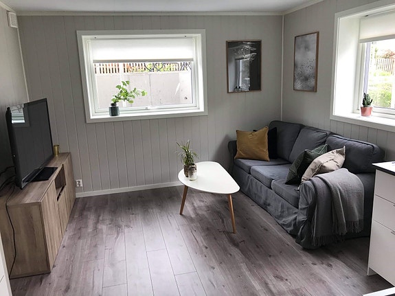 Hybelen er ny og moderne, da enebolig stod ferdig helt i slutten av desember 2018.