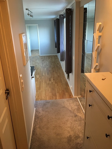 Leiligheten er delvis møblert, inkludert med hvitevarer.