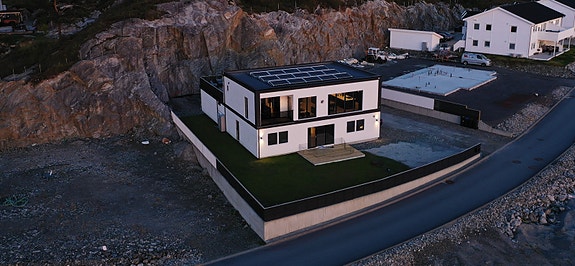 Åpent med sjøutsikt, vestvendt. Tidsriktig finish med grønnblå, mørke toner, svarte detaljer og store gode vinduer.