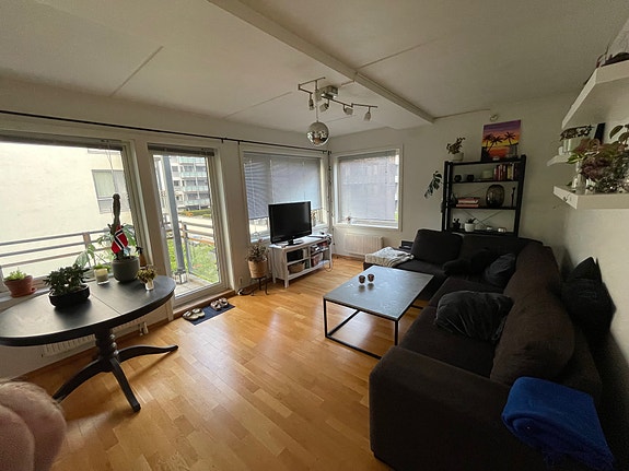 Entre, 2 soverom, bad, kjøkken (åpen løsning), stue med utgang balkong, bod.