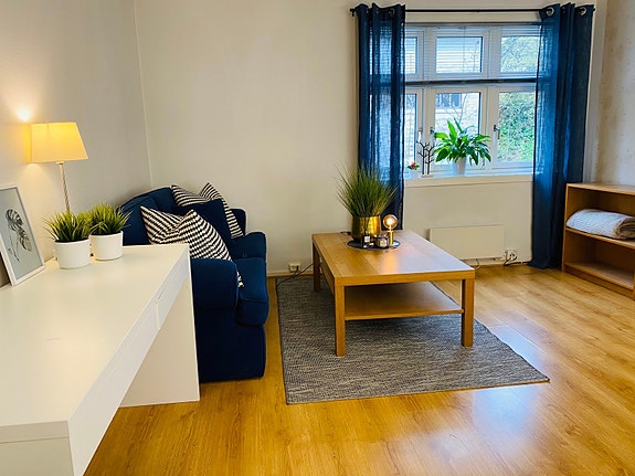 Leies ut fullt møblert. Buss, butikk og pizzarestauranter rett over gaten. 5 minutt å gå til sentrum .
