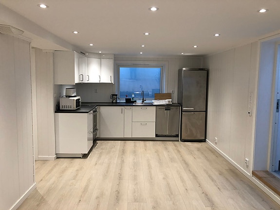Lys og moderne umøblert hybel med egen markterrasse, tilgang til stor hage og biloppstillingsplass leies ut fra mars 2026. Hybelen har egen inngang og holder gjennomgående meget god og tidsriktig standard.