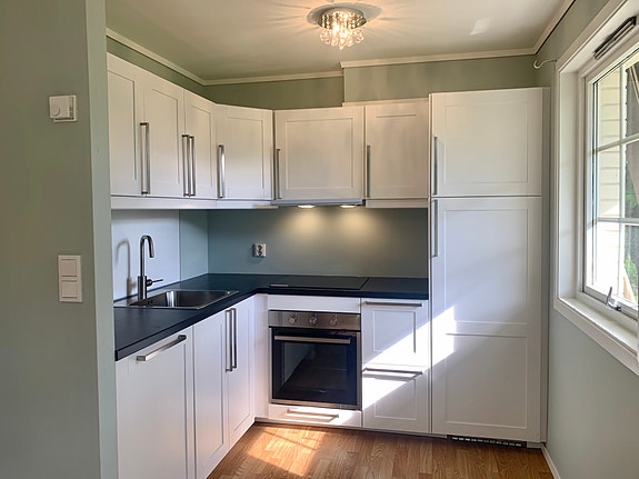 Leiligheta vart renovert i 2020 med blant anna nytt kjøkken, bad og vaskerom. Kvitevarer på kjøkken er integrert.