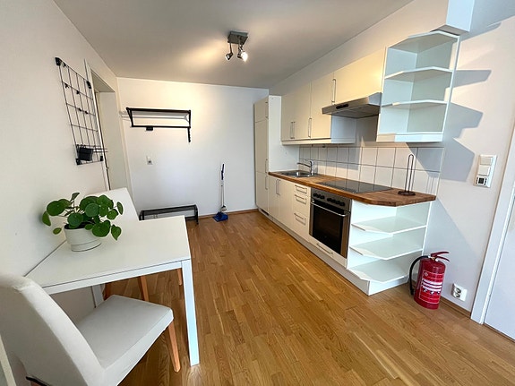 Varme i alle gulv. Hybelen er delvis møblert, men i den grad leietaker ønsker enkelte møbler fjernet er utleier åpen for å diskutere det.