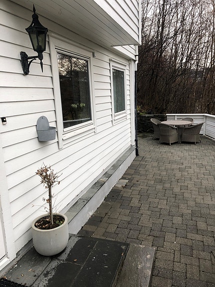 Utenfor inngangsparti er det mulighet for å plassere hagemøbler.