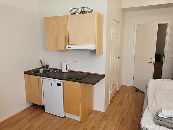 Moderne møblert hybelleiligheten med eget bad og kjøkken modul. Leie inklusiv fiber og strøm. Felles vaskerom.