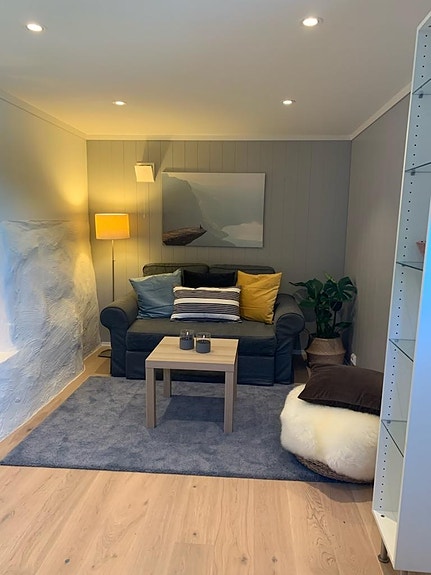 Det er varme i gulv i alle rom. Hybelen leies ut møblert (som på bildene), og det inkluderer vaskemaskin, oppvaskmaskin, sengetøy/puter/dyne/håndklær og diverse kjøkkenutstyr som vannkoker/bestikk/kjeler/kjøkkenredskaper mv.