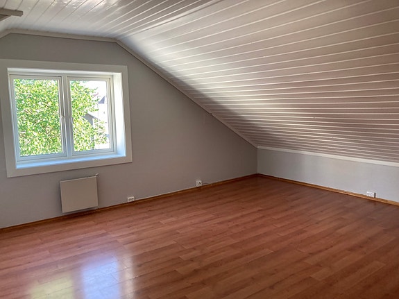 Liten leilighet, toppetasje med skråtak. Ca 40 m2. Ledig til leie.