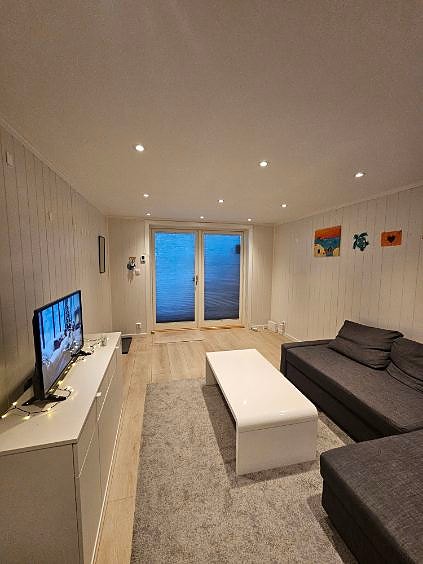 Stuen er lys og romslig, har ett soverom og godt med lysinnslipp. Nytt baderom.