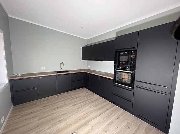 Leiligheten ble ferdigstilt i 2023, den er delikat innredet med moderne farger og detaljer. Her er gang, stua med varmepumpe og åpent til lekkert kjøkken. Utgang til overbygd terrasse og hage. Tre soverom, flott bad og praktisk vaskerom. Medfølger en utvendig bod og carport.
