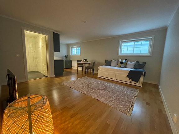 Leien utgjør 12000 pr måned. Depositumskrav: 24 000 kroner tilsvarende 2 mnd leie. Depositumsgaranti aksepteres. Leien inkluderer strøm, varmtvann og internett.