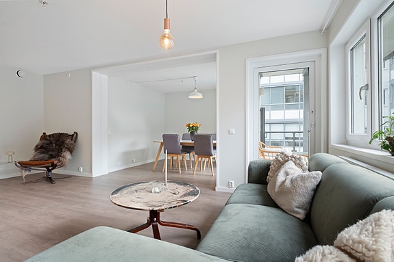 Leiligheten har vannbåren varme/fjernvarme og inkluderer en vaskemaskin. TV og internett er inkludert i leien.