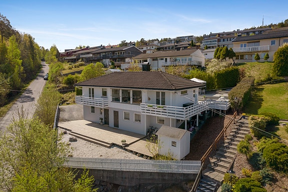Romslig enebolig til leie, med to store terrasser, sentral beliggenhet og fantastisk utsikt ut over fjorden.