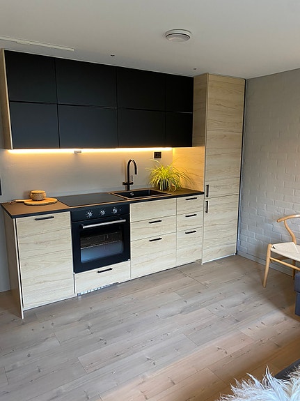 Nyoppusset i 2022, med bl.a. nytt kjøkken og nymalte vegger.