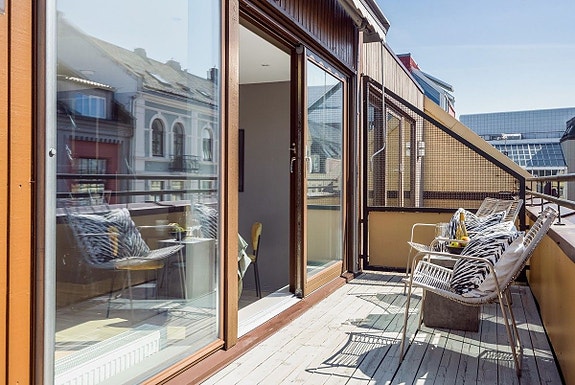 Vestvendt balkong på 10 kvm