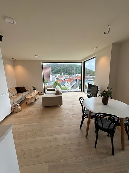 Lys og fin leilighet i sentrum, opp mot Husabø, i Hammers gate. Leiligheten fremstår som ny. Den ble bygget i september 2022. Soneparkering utenfor leiligheten. Leiligheten er fullt møblert.